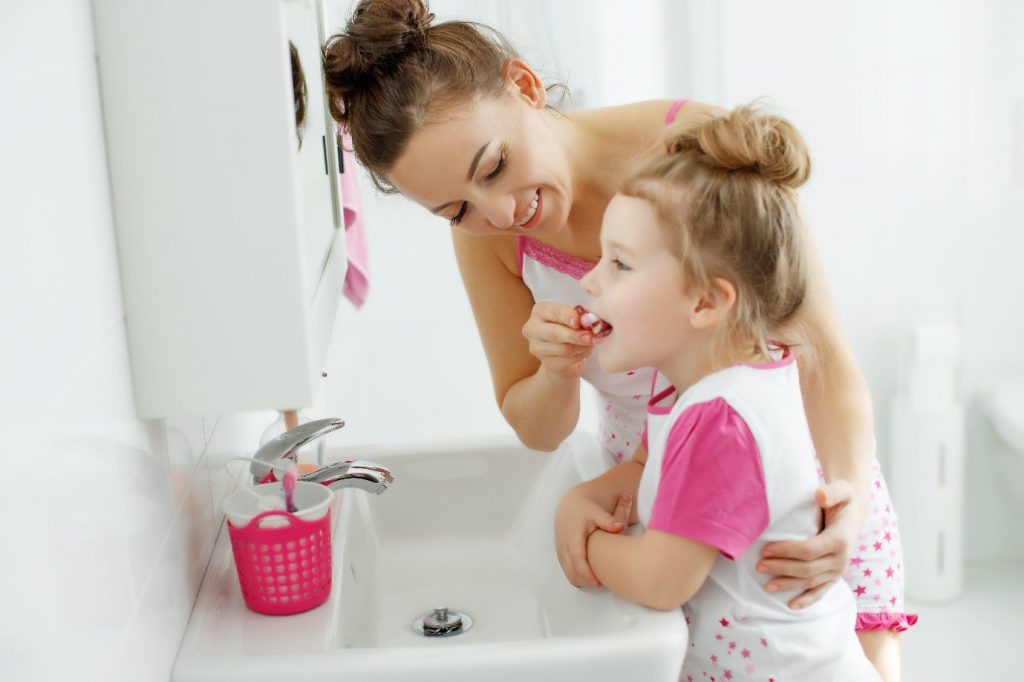 Sit them on your lap or stand behind them. Gently brush their teeth in circular motions and brush each surface of every tooth. Brush for at least two minutes. Clean your child’s teeth twice a day up to the age of seven or eight and then supervise their cleaning up to the age of twelve.
